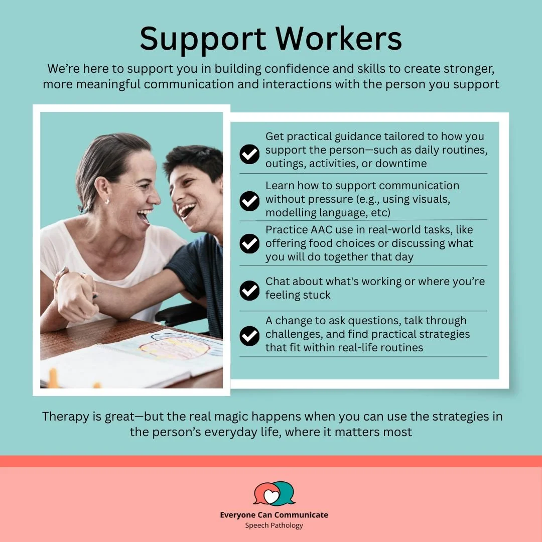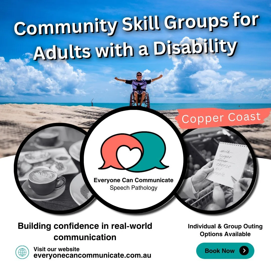 Practical, real world speech therapy for adults with communication challenges and their caregivers, such as parents, carers, or support workers. Led by a speech pathologist, these sessions build confidence, teach effective strategies, and support communication in everyday settings like shops, cafés, and libraries.