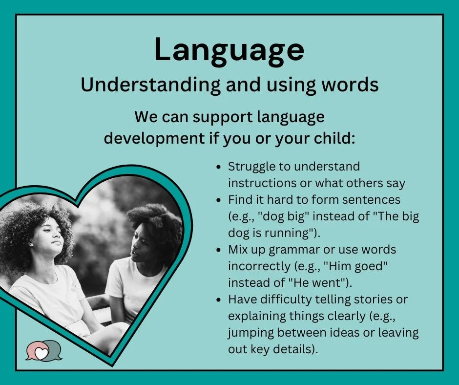 We offer sessions tailored to each person’s needs and interests. Our focus is on developing communication skills that are important and meaningful for everyday life, helping people express their wants, needs, thoughts, and feelings.